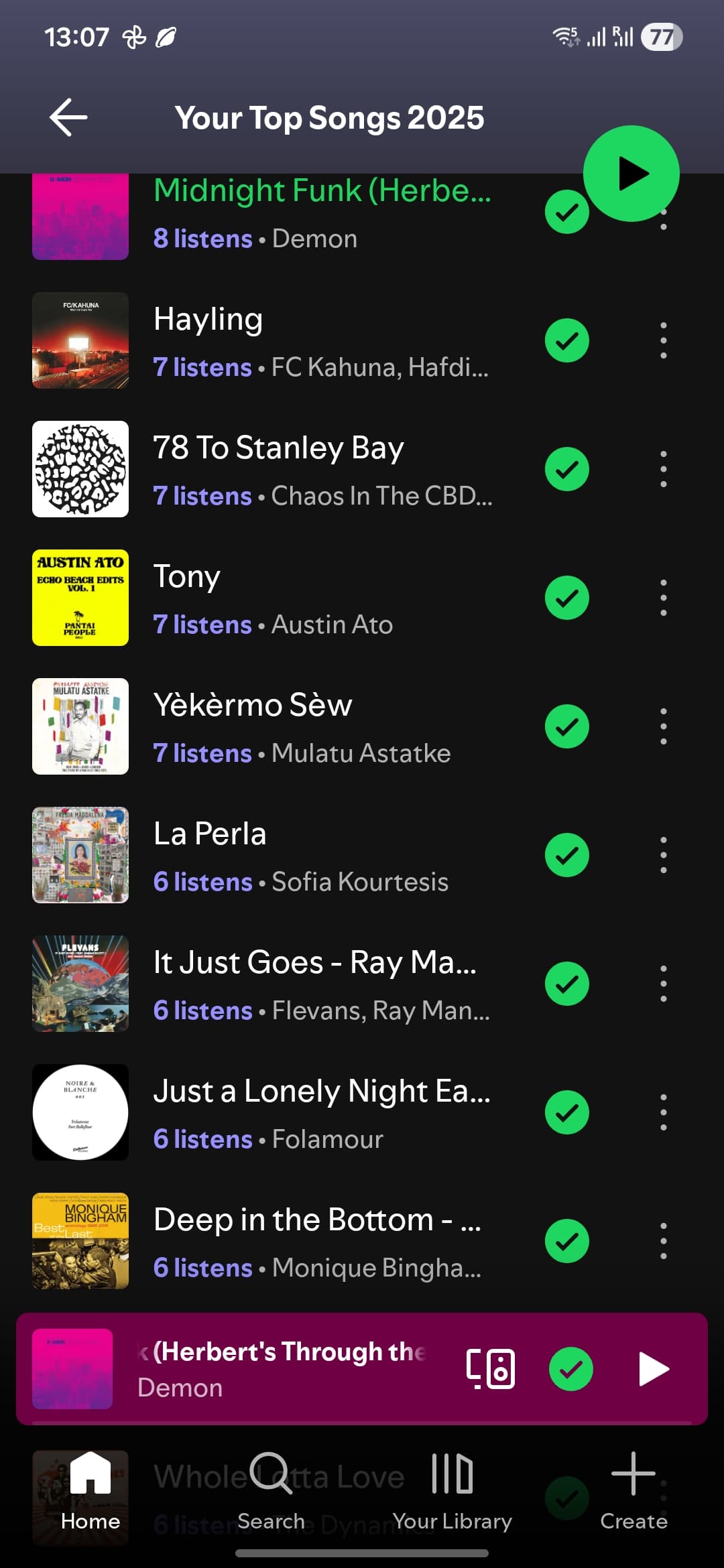 So, these are my most played songs according to Spotify. It’s a surprising list, not that they’re bad tracks, I just feel like I’ve listened to other stuff more. The number of plays is also lower than expected, especially for Hayling, which the Missus got quite obsessed with around June and July.