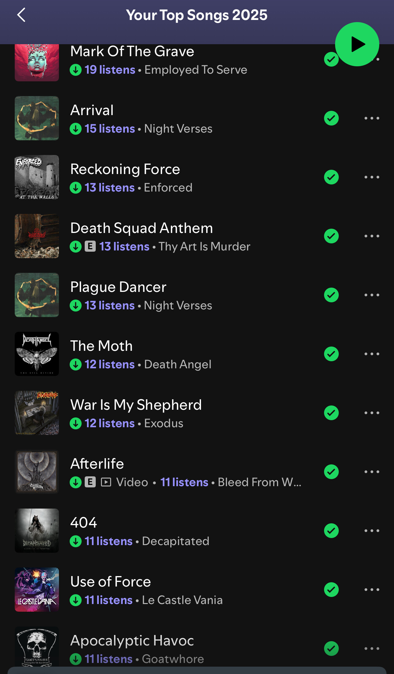 I mostly use Spotify when I’m at the gym so tends to be songs that help me through training sessions. I am heavily into various genres of Metal but I do like a lot of other stuff (electronics, dance, hip hop, funk, general rock)