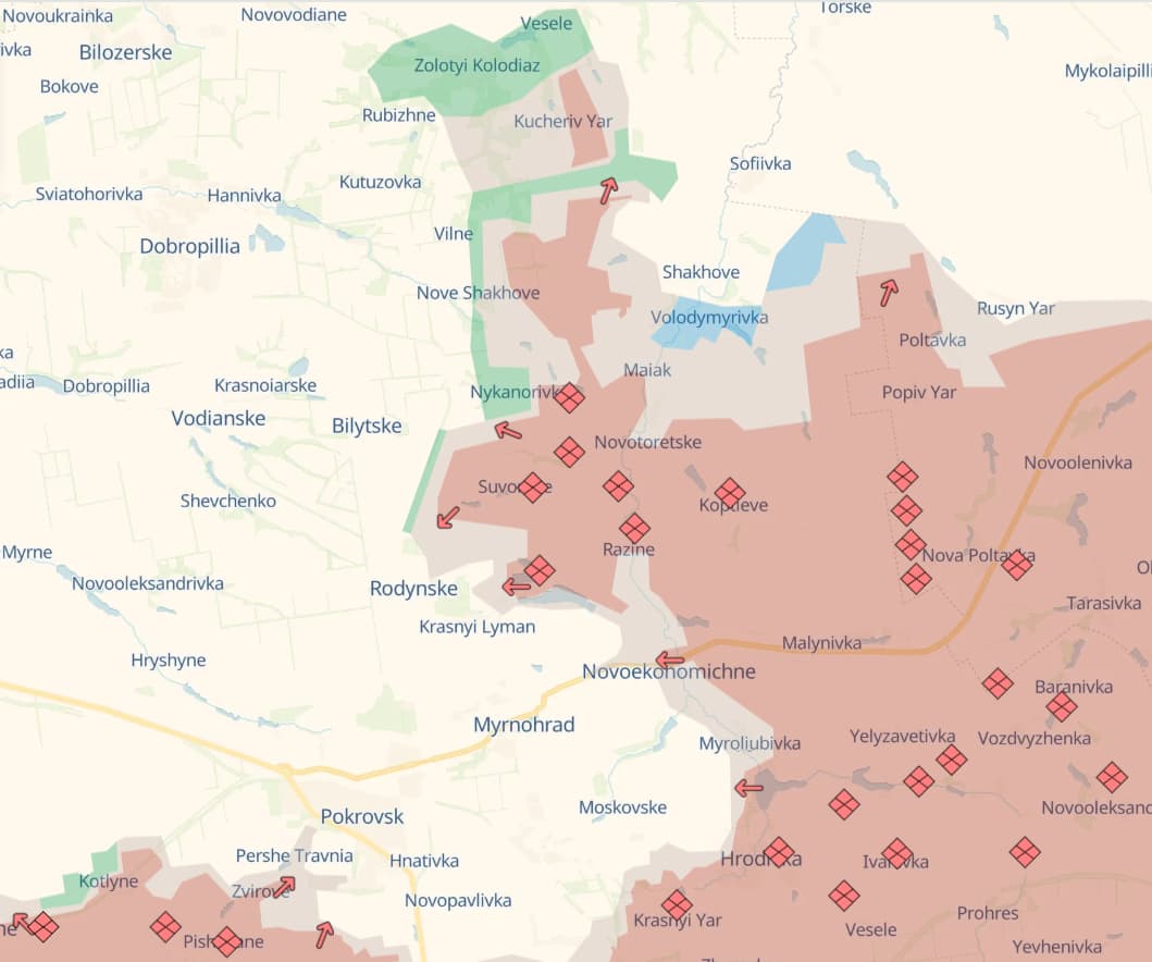 Deepstate_UAās surprise map update shows a sudden ~10km Russian advance east of Dobropillia, a key mining town and planned Ukrainian hub. Analysts and soldiers confirm the alert.