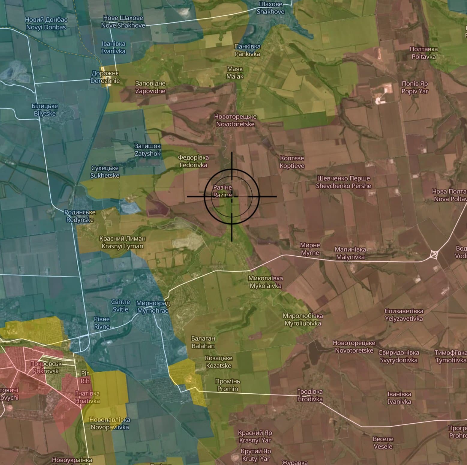 Today, the Ukrainian side reported the capture of Kuczerow Jar and released a video showing soldiers of the 132nd separate reconnaissance battalion raising a flag in the ruins of the village, as well as taking approximately 4-6 prisoners from an unknown Russian unit. Sentinel analysis from 19.10.2025 indicates that the assault on the village was conducted from the direction of WeseĹe village, along one of the forested strips stretching from the fortifications of the New Donbas Line to the northeastern edge of Kuczeriw Jar (48.52139, 37.2864). Between 4.10 and 19.10, the area was almost completely burned out as a result of fighting, and Russian forces dropped 4-5 FABs in its vicinity. It is worth noting that the Ukrainians attacked Kuczeriw Jar along this forested strip already in September, but they were apparently repelled at that time.