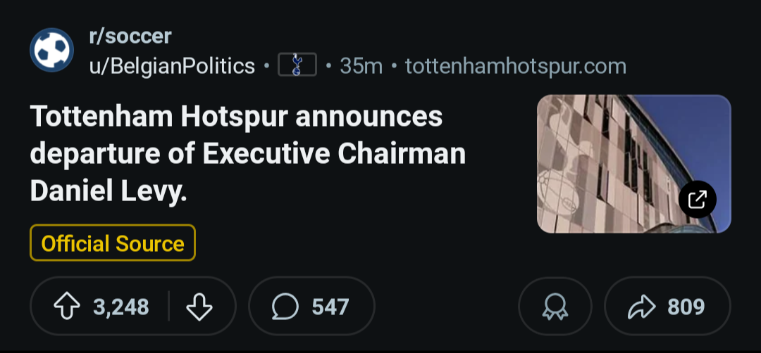 This is huge news. Levy built the fans lovely state of the art stadium which will probably be his postive legacy, but he did set the club back by sacking good managers when he shouldn’t have, for example Pocchitino and Mourinho to name but a few.
