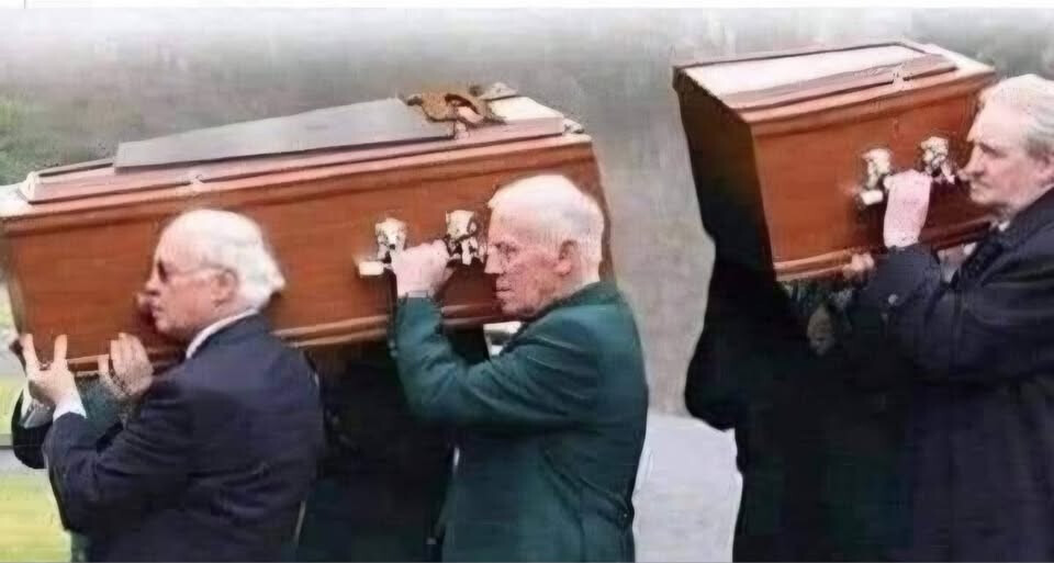 At the funeral, the tearful wife of the Englishman says, “All Arthur had to do was tell me he didn’t like roast beef. I’d have made him another filling!”