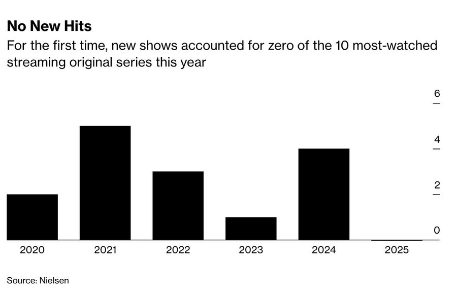 It feels like more TV is being made than ever, but less that really grabs me that I feel I need to watch. This interesting stat from a recent analysis by Bloomberg probably speaks to that - when there is so much available we gravitate to what is familiar, even if its S5 of once interesting show now running on fumes.