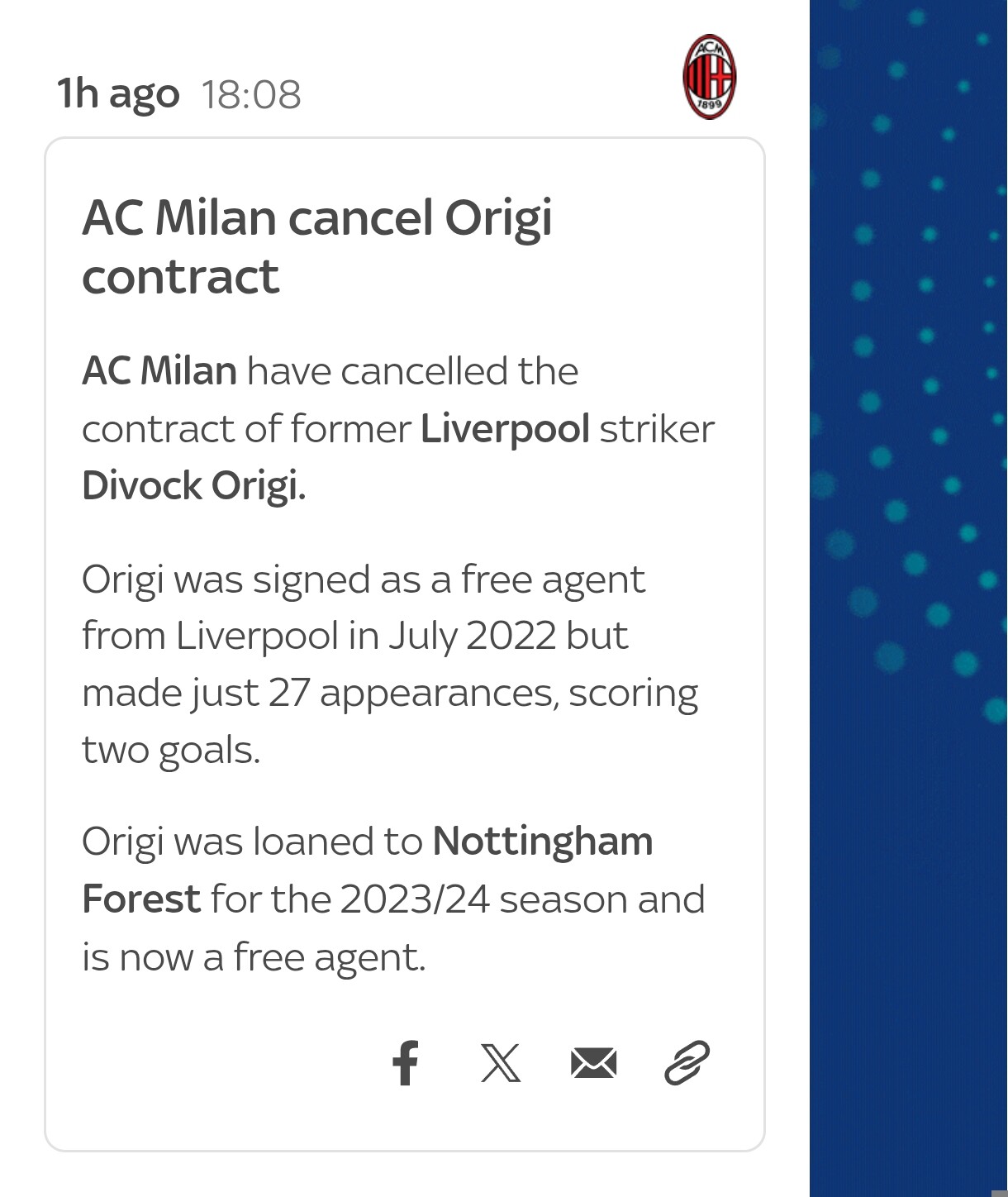 He publicly gave a very gracious thank you to the club for the way they handled the situation.