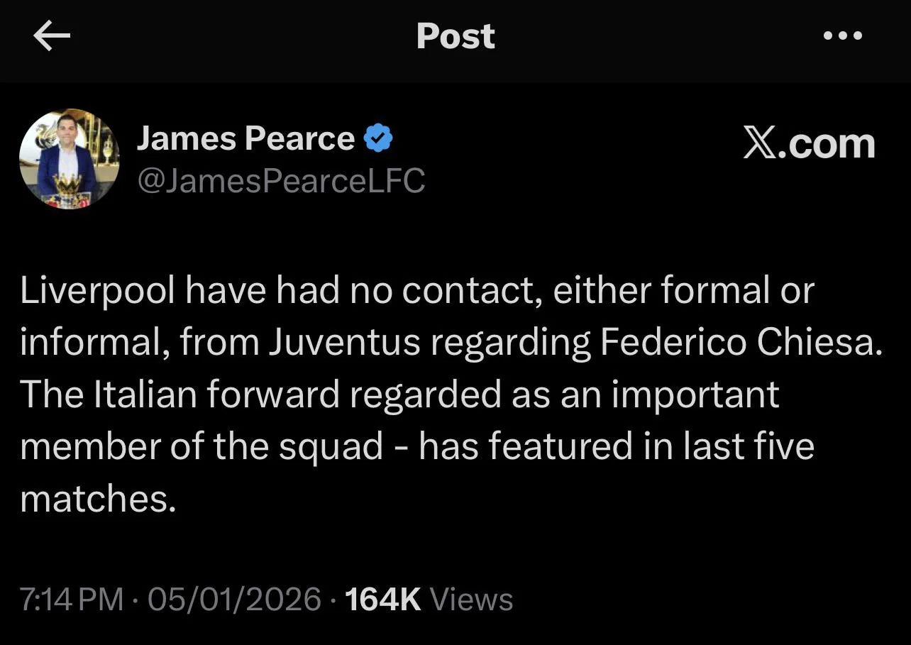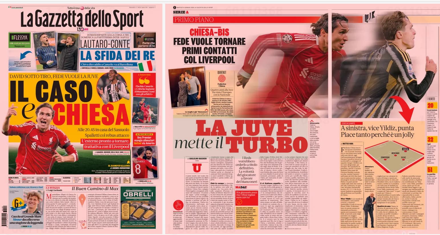Juventus have started talks with Liverpool over a loan move for Federico Chiesa, with the 28-year-old Italy forward open to a return to the Serie A club where he spent two seasons between 2022-2024. (La Gazzetta dello Sport - in Italian)