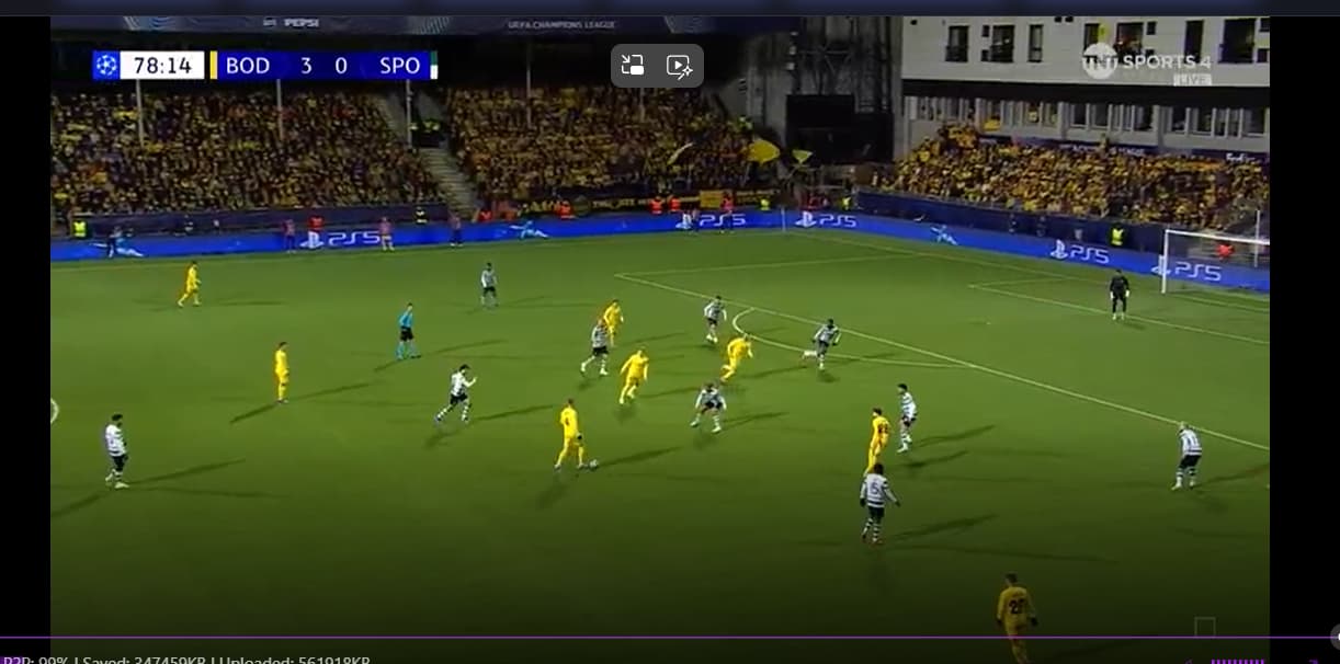 Second half not as good as the first, the tempo is slightly lower. Sporting also a bit better, manages to retain the ball and actually run forward and create. Bodø not as good as in the first half, but then again, they have made 3-4 chances this half too. Just no goals yet.