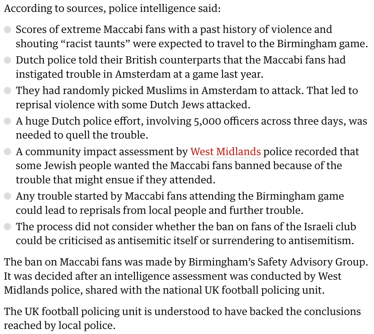 Your response âAbsolute nonsense to imply that the banning of the Maccabi fans is anti semetic if thatâs what youâre trying to get atâ.
