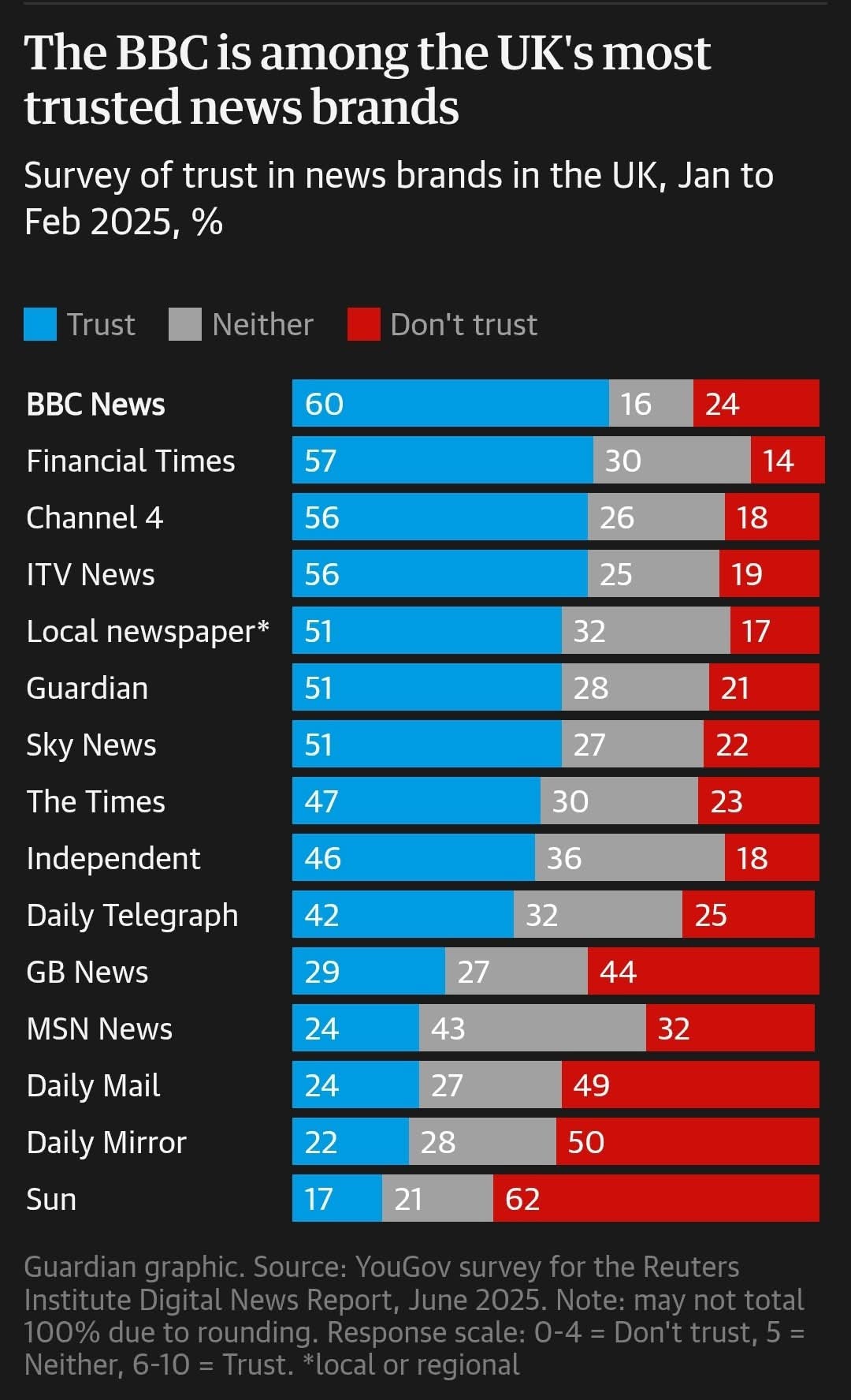 If you sort it by âdonât trustâ itâs about level with the Telegraph. The interesting thing is the âneitherâ column being low, which means it does still have sufficient reach for most people to have an opinion about it.