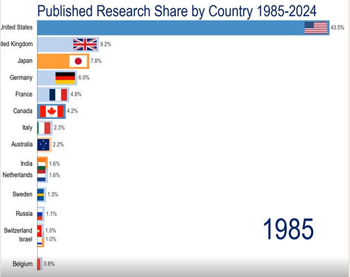 what constitutes published research? who certifies it? what fields? can a country just push out published research internally? what is the quality of the research?