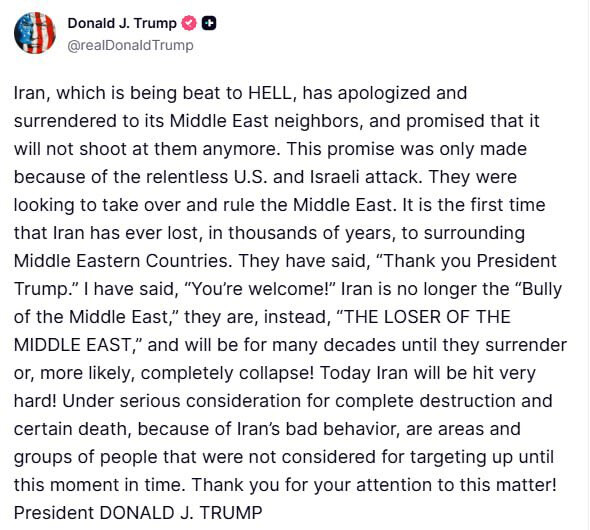Absolutely psychopathic statement worse than recent IRGC statements. But this is the US president.