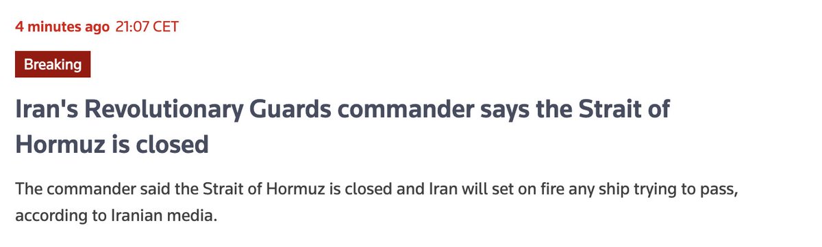 Noted, although I will also note that the Hormuz Strait has been de-facto closed for 2 days now, even though some mad shipping company has decided to “test the waters” and sailed through.