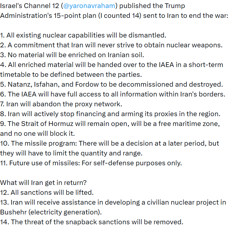 I don’t think it’s to torpedo anything. I think these are their demands. Delusional since they are not about to invade to enforce said demands, but Trump admin sees these as reasonable and something they can take as a win to end the war.