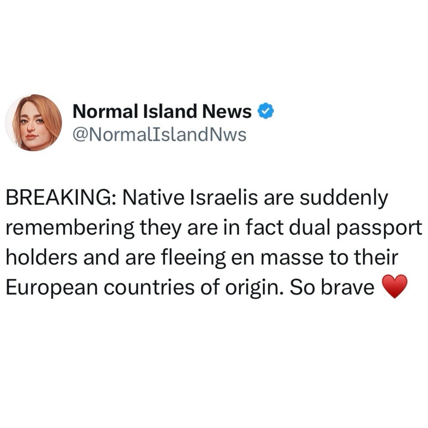 Yeah, maybe, but I don’t really buy that. I think the Iranian regime, nuclear program and ballistic missile arsenal is why this is happening. After all, Netanyahu has swept off all of Israel’s enemies since October 7th and those interests allign with much of the US admin.